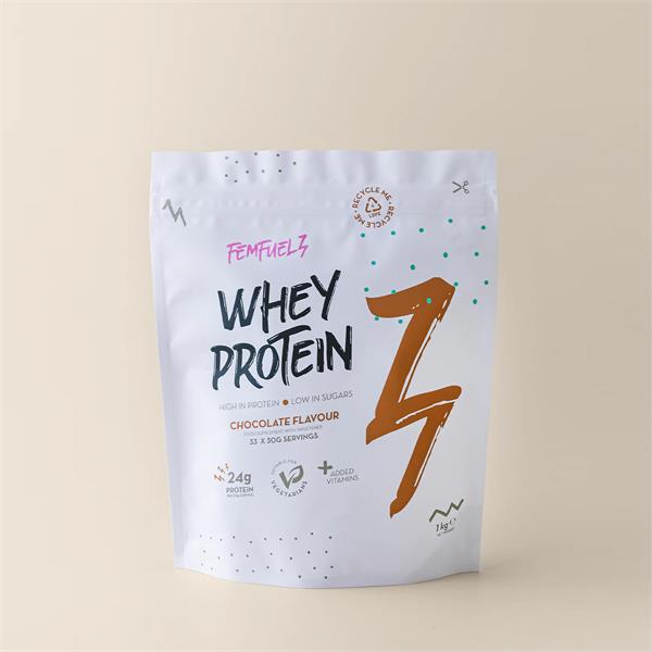 A premium whey protein made in Ireland giving you 25g of protein per serving with added digestive enzymes, vitamins, and nutrients. FemFuelz Whey Protein contains only 0.3g of sugar per serving, without compromising on flavour!