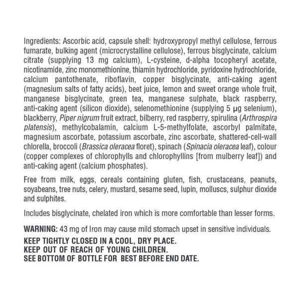 Each capsule delivers 42mg of naturally chelated iron, combined with vitamin C.