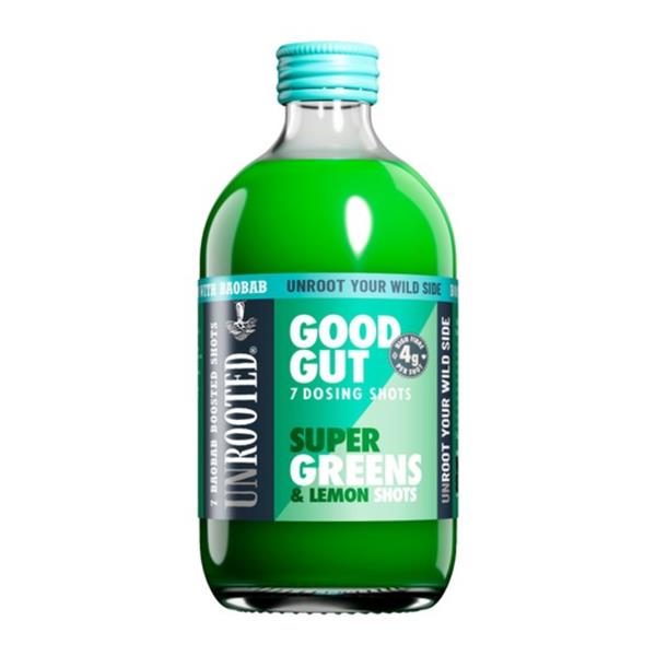 Your Good Gut game just got a whole lot greener! Unrooted combined star superfruit, the mighty wild baobab, with lemon and some serious super greens to bring you the ultimate green boost with a side of zest and 4.2g of fibre.